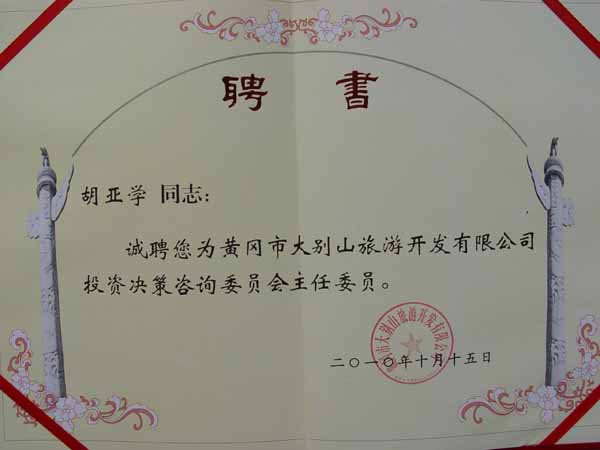 10月15日,黄冈市大别山旅游开发有限责任公司投资决策咨询委员会会议在该公司多功能会议厅隆重召开。我院人文科学系主任胡亚学副教授受邀出席了该次大会。会上,市国资委主任、公司董事长柯昌荣向胡亚学副教授颁发了聘书,聘其为“黄冈市大别山旅游开发有限责任公司投资决策咨询委员会主任委员”。