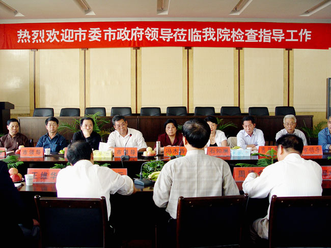 2005年10月11日下午,市政协副主席冯木香、石如澜一行专程到我院就“十一五”发展规划进行了专题研究。冯木香、石如澜一行听取了院党委书记涂普生同志关于学院基本情况、当前发展的现状、近期主要工作、“十一五”规划等方面的工作汇报。参观了学院校容校貌、学生公寓、在建工程工地、实验实训中心。