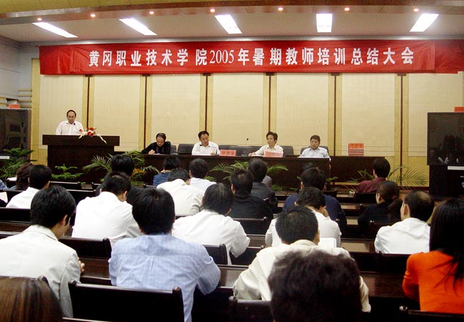 2005年10月13日晚6:30,在学院学术报告厅召开了2005年暑期教师培训总结大会。院长周德德金、副院长汪晓凌出席了大会。会议由教务处李雪早处长主持。