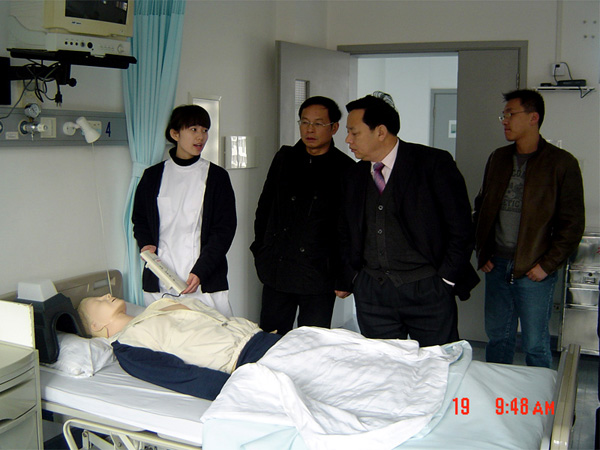 上海医药高等专科学校是第一批国家示范性高职院校立项建设单位,也是第一批国家示范性高职院校中唯一的一所医药类高职院校。该校师资力量雄厚、专业特色鲜明、教学设施先进、实验设备精良,拥有国家财政和上海市教委重点建设的上海市现代护理实训中心、上海医学检验开放实训中心、上海口腔医学技术开放实训中心、上海现代眼视光技术公共实训中心、上海市现代药学公共实训中心、上海临床医学(乡村医生)公共实训中心、影像技术电子实训中心等,是上海市开展多种形式卫生职业培训的重要基地。院长陈年友一行在该校领导的陪同下,重点参观了该校现代护理实训中心、现代眼视光技术公共实训中心、影像技术电子实训中心、医学检验开放实训中心、现代药学公共实训中心。通过座谈交流、现场观摩等方式充分了解了该校医药类专业建设、实训基地建设、国际合作办学等情况,这为我院医药卫生学院的建设提供了借鉴,指明了方向。