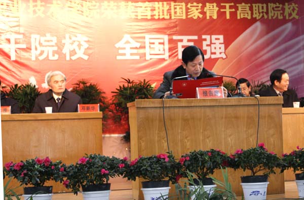 市委常委、常务副市长王静平代表市委、市政府作了重要讲话。他希望,学院进一步深化教学改革,在专业建设与人才培养模式改革、师资队伍与领导能力建设、社会服务能力建设等方面高标准、高质量完成建设任务;市各有关部门要在学院周边环境治理、规划、土地、税收、财政等方面给予支持,营造良好建设环境;行业企业要主动与学院深度融合,推进合作办学、合作育人、合作就业、合作发展,构建政府与行业企业共建高职院校的体制机制。举全市之力,为把黄冈职院建设成为国内一流的骨干高职院校,打造全国知名的高职教育品牌,实现黄冈职业教育产业大发展作出新的更大的贡献。