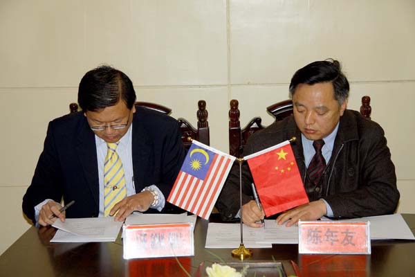 宾主双方在充分讨论的基础上,就课程互认、学术合作等方面内容,对协议逐条审核落实。最后,校长陈年友和吉隆坡建设大学副校长Lee Geak Chai一起共同签署了校际合作协议。