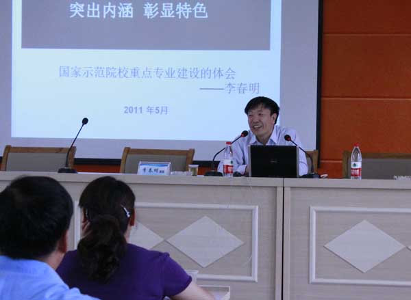 李春明教授,现任长春汽车工业高等专科学校副校长,国家精品课程《汽车舒适与安全系统检修》负责人,2008年汽车检测与维修技术专业国家级教学团队负责人,教育部高等学校高职高专汽车类专业教学指导委员会委员。李教授结合他们首批国家示范院校建设的成功经验,从示范院校建设概况、人才培养模式改革、课程建设、探讨的几个问题四个方面进行了经验交流。特别是在人才培养模式、学生职业素养等方面提出了独到的见解。