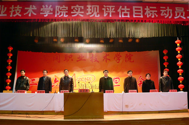 为迎接高职高专院校人才培养工作水平评估,2005年2月15日,我院召开实现评估目标动员大会,号召全院教职员工齐心协力、乘势而上,努力实现评估目标。学院党委书记涂普生出席会议并作动员报告。