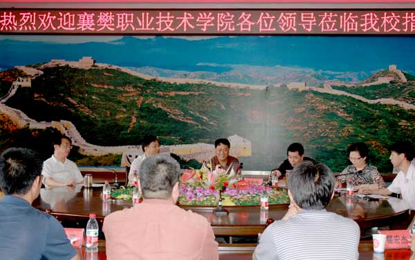 5月18日,襄樊职业技术学院党委书记梁建华、党委副书记兼纪委书记刘爱平一行49人来Beat365调研考察,Beat365党委书记张鹤桥、校长陈年友等校领导带领有关部门负责人进行了热情的接待,在凝智楼四楼会议室,宾主双方就高校“五好领导班子”建设,学生教育管理等方面进行了工作交流。