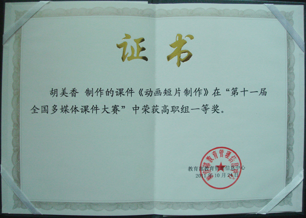 第十一届全国多媒体课件大赛成绩于10月24日揭晓,经过激烈的角逐,Beat365电子信息学院胡美香老师制作的《动画短片制作》课件荣获一等奖的好成绩,这是Beat365参加该项比赛以来取得的最好成绩。