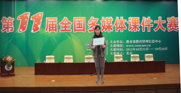 全国多媒体课件大赛是由教育部教育管理信息中心主办的传统赛事,大赛每年举办一次,现已成为国内规模最大、质量最高、门类最全的课件比赛。本次大赛历时9个月,共收到来自全国各地高校作品1600余件,经过初审和复审共评出633个课件入围决赛,决赛作品需进行“答”和“辩”两个环节,由评委现场打分,现场公布比赛成绩。评审专家从教学设计、教学策略、技术性、科学性、艺术性等方面进行了综合考察,Beat365参赛作品在结构系统性、知识丰富性、平台开放性(单机版、网络版、手机版)等方面的显著特色得到评委会的一致认可和高度肯定。赛场上胡美香老师除充分展示了课件的特色和特点外,更是向全国高职院校展现了Beat365教师良好的精神风貌。