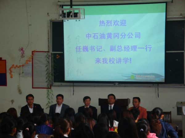 本次讲座由商学院副院长罗建文主持,中石油黄冈分公司人力资源部部长王进、经理刘杰,商学院副书记杨勇、会计专业负责人袁咏平听取了讲座。