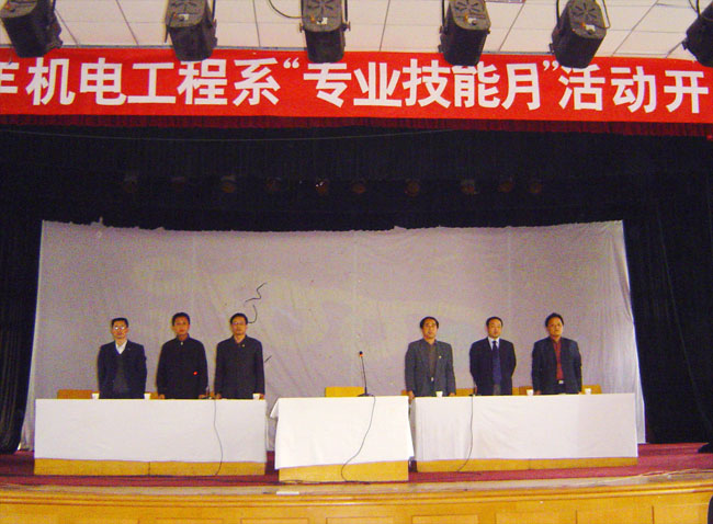 2006年机电工程系专业技能月活动开幕式于5月13日在大学生活动中心隆重举行,出席开幕式的有院党委副书记、研究员覃守云、教务处处长李雪早、机电系党总支书记万俊华、机电系党总支副书记熊楚舒、机电系副主任黄国祥、机电系副主任方玮。万书记为大会致开幕词。李处长宣布机电系专业技能月活动开幕。