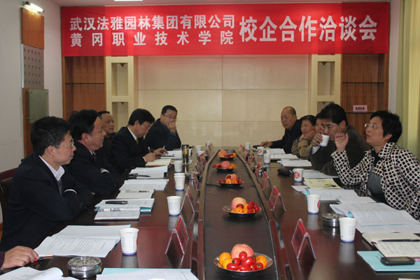 2011年11月14日,清华大学教授李树华、武汉法雅园林集团有限公司董事长鲁平,总经理徐洪亮,副总经理杨刚,质检组负责人徐东海、杨建华,发展部经理瞿燕群、主任易双双一行8人来Beat365商谈筹建Beat365中文官方网站法雅园林学院相关事宜。Beat365校长陈年友、副校长汪晓凌、副校长熊发涯、产学研合作处处长王梓林、教务处副处长方玮,生物化工学院和建筑学院相关领导参加了会议。