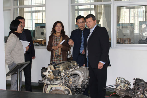 随后的2天半时间里,安迪摩尔先生一行认真地听取了各个教学学院的汇报,重点参观了交通学院、机电学院、商学院、医药卫生学院、建筑学院、生物化工学院等学院的实验实训场地,考察了在建的南湖汽车城,参观了学校校史馆并欣然题词。