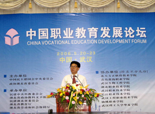 2006年4月20日至23日,由中国民主建国会中央委员会、政协湖北省委员会主办的中国职业教育发展论坛在武汉东湖宾馆举行。全国政协副主席张榕明,中共中央政治局委员、湖北省委书记俞正声、省政协主席王生铁、副主席王少阶等来自全国20多个省、市、自治区的领导和专家出席了大会。我院党委书记法人代表、湖北省“五一”劳动奖章获得者涂普生研究员应邀出席大会并发表了热情洋溢的演讲。