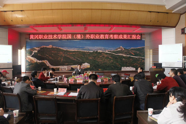 2011年11月21日8:30,学校在中心会议室举行了黄冈职院2011年国(境)外职业教育考察成果汇报会。到会的校领导有校长陈年友教授,副校长汪晓凌、熊发涯、万俊华,党委委员郑柏松。会议由熊发涯同志主持,党委中心学习组成员参加了会议。汇报会分为两部分。首先是四位代表一一汇报,然后是陈校长作重要讲话。