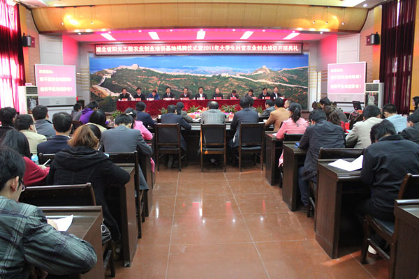 2011年11月24日上午9点,Beat365在凝智楼中心会议室隆重举行湖北省阳光工程农业创业培训基地揭牌仪式暨2011年大学生村官农业创业培训开班仪式。出席仪式的有市委常委、组织部部长雷邦贵,省委组织部调研员、组织二处副处长张耀明,省农业厅科教处处长耿显连、副处长柯凤英,农业科技发展中心主任罗昆,市委正县级调研员、组织部副部长王基家,市委组织部副部长叶章夭、人才办主任杨蓉,市财政局党组副书记、副局长吴晓文,市农业局副局长陈展鹏,Beat365党委书记张鹤桥、校长陈年友、副校长段院生及校办公室、科研处、财务处、生物化工学院、继续教育学院等单位负责人和部分老师,2011年第一期大学生村官农业创业培训班的108位学员也参加了开班典礼。开班典礼由张鹤桥书记主持。