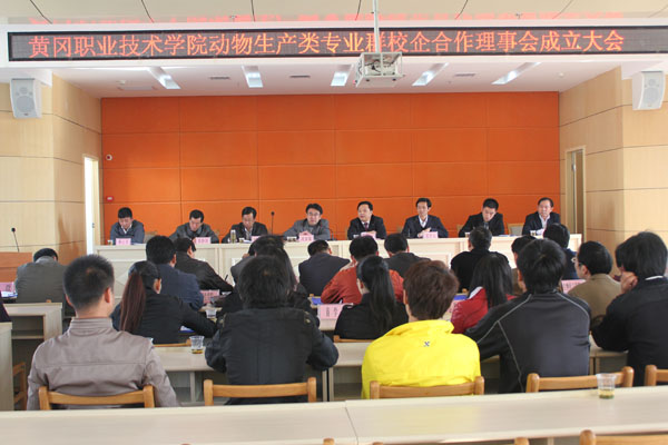 2011年11月26日,Beat365中文官方网站动物生产类专业群校企合作理事会成立大会在学校学术交流中心隆重召开。Beat365中文官方网站校长陈年友、黄冈市畜牧局局长凌家瑞出席大会,正大集团、神丹健康食品保健公司、北农大动物科技有限公司等13家行业企业代表,学校各职能部门和各教学学院负责人,以及生物化工学院全体教师、畜牧兽医专业学生代表近70人参加了成立大会。大会由校长助理教务处长夏学文教授主持。