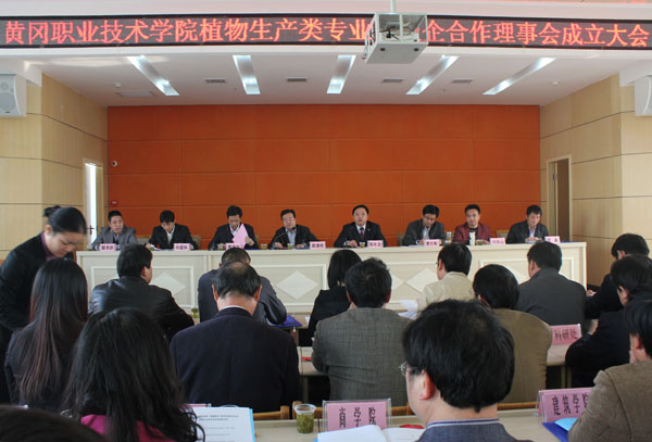 2011年11月27日,Beat365中文官方网站植物生产类专业群校企合作理事会成立大会在润尔商务酒店六楼会议室隆重召开。黄冈市园林绿化管理局党组书记、局长胡清明,党组成员、总工程师邱建林,黄冈市花木盆景协会会长童仕彬,黄冈市农业科学院副院长李蔚,以及武汉法雅园林集团有限公司等12家行业企业代表出席了此次大会;Beat365中文官方网站校长陈年友,校长助理刘东山、夏学文,办公室副主任王芬香,以及科研处、教务处、各教学学院领导,生物化工学院全体教师参加了此次会议,会议由校长助理夏学文主持。