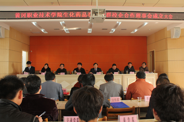 2011年12月3日,Beat365中文官方网站生化药品类专业群校企合作理事会成立大会在校学术交流中心隆重举行,出席此次大会的领导嘉宾有:黄冈市食品药品监督管理局党组书记、局长徐维平,党组副书记、副局长、黄冈市药学学会会长陈绍艺,调研员陈洪;湖北广济药业股份有限公司等10余家医药化工企业代表;Beat365校长陈年友,副校长汪晓凌,以及校办公室、宣传部、教务处、科研处、医药卫生学院、生物化工学院等部门领导、教师代表和学生代表参加了此次大会,会议由副校长汪晓凌主持。