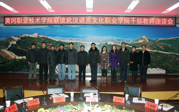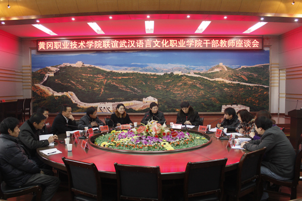 2011年12月29日上午8:30,学校四楼中心会议室组织了“Beat365中文官方网站联谊武汉语言文化职业学院干部教师座谈会”,到会的领导有副校长熊发涯、党委委员郑柏松。参加会议的有武汉语言文化职业学院的交流干部教师王翩翩、黄丹莉、曾艳、徐丹,Beat365中文官方网站商学院党总支书记吴祝平、招生就业处处长王政芳、信息学院院长罗幼平、公共课部书记王莹华、教务处副处长方玮、人事处副科长叶文胜参加了座谈会。会议由郑柏松同志主持。
