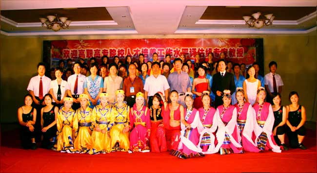 市委市政府领导陪同评估专家观看我院学生自编自导的晚会,并合影