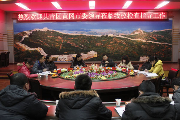 2012年3月6日下午,团市委副书记骆明正、学校部部长江若萱、 市直团工委书记范栋,黄州区团委副书记陈媛媛一行,就Beat3652011年度共青团工作进行检查考核。工作汇报会在凝智楼中心会议室举行。学校党委委员郑柏松、学工处处长、团委书记叶华光,副处长徐火军、李宁,校团委科长张爱东、吕晓霞及各学院团总支副书记参加了汇报会。