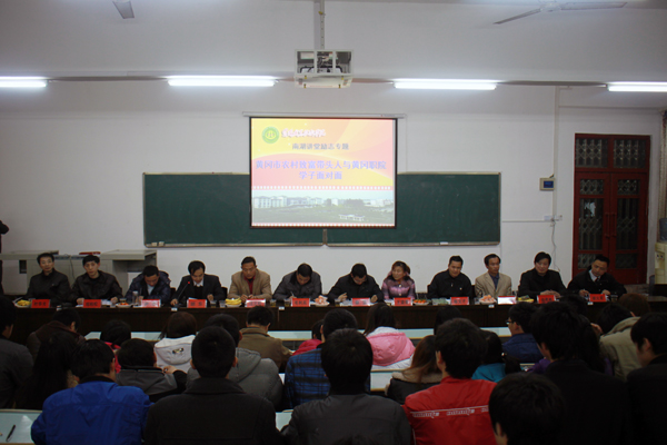 本次活动特别邀请了在Beat365生物化工学院接受培训的八位黄冈市农村致富带头人与Beat365学生进行面对面交流。首先,八位特邀嘉宾依次介绍了各自的创业历程。他们用通俗易懂的语言讲述了创业的曲折与艰辛,用鲜活精典的实例表达了对学习机会的渴望与珍惜。虽然他们的创业经历各不一样,但对求知的欲望和对事业的执着追求却完全相同。他们一再告诫同学们要珍惜来之不易的大学时光,要坚持不懈地学好专业知识与技能,为将来适应社会、发展事业积蓄力量。虽然他们出身平凡却透露坚毅,语言朴实却字字珠玑,他们对人生的精彩演绎深深感动了在场的每一位师生,现场多次响起热烈而持久的掌声。