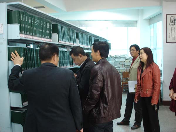 张书记一行参观了图书馆,边看边了解。参观结束后,馆长段茂盛从图书馆的基本情况、东区图书馆建设方案、图书馆下步计划以及存在的困难与问题进行了汇报。随后,参与调研的学校各处室负责人对图书馆的工作成绩表示肯定,对东区图书馆建设工作提出了许多宝贵的意见,表示要在力所能及的范围内,对图书馆的工作予以大力支持。