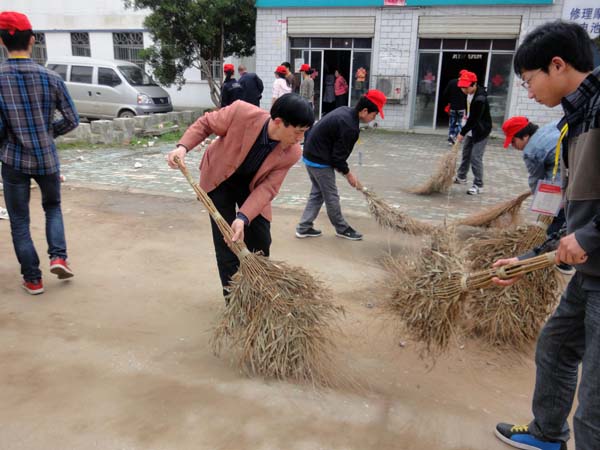 青年志愿者们头戴小红帽,手持铁锹、扫把,齐聚桃园街,形成了一道亮丽的风景线,展现了Beat365大学生风采。