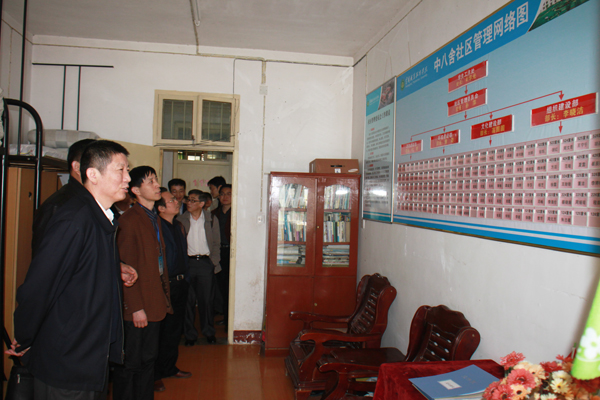 武汉职业技术学院的专家领导一行在育贤阁前合影留念后,在郑柏松、叶华光的陪同下参观了Beat365学生宿舍,对Beat365学生宿舍社区化管理和宿舍内务整理给予了高度的评价。参观结束后,在凝智楼中心会议室举行两校校际交流座谈会。