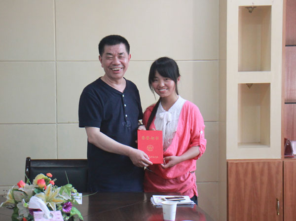 党委书记张鹤桥向王定同学颁发“最佳校园之星”的荣誉证书