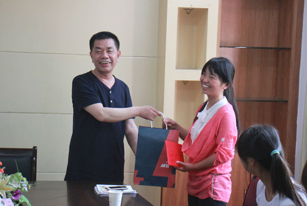 党委书记张鹤桥向王定同学赠送旅游鞋