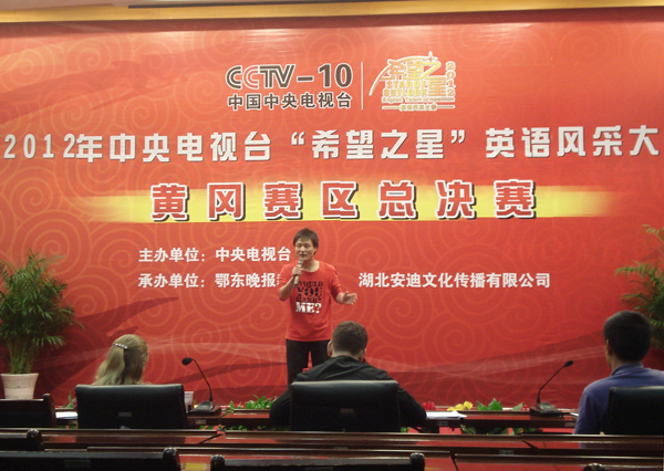 2012 CCTV“希望之星”英语风采大赛黄冈赛区总决赛已于2012年5月13日落下帷幕。总决赛在东源大酒店二楼多功能会议室举行。担任总决赛的评委有:“希望之星”湖北赛区评委David, 瑞典外教Julia和黄冈师范学院外语学院童院长。