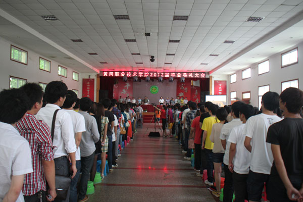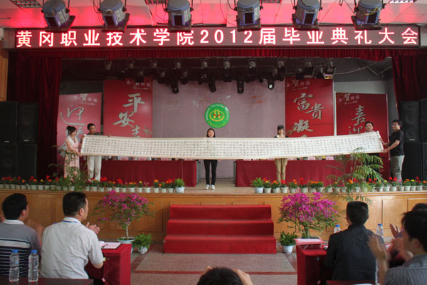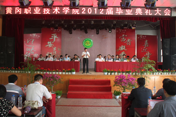 陈年友教授发表了重要讲话,向圆满完成学业、即将开始崭新人生旅途的2012届毕业生表示热烈的祝贺和美好的祝福,向多年来辛勤培育、热忱服务同学们成才的全体教师、全体辅导员和管理工勤人员,向含辛茹苦的各位毕业生家长致以最亲切的问候和最衷心的感谢。陈校长说:三年来,2012届毕业生在黄冈职院不仅汲取了知识的营养,更沐浴着“崇德强能、务实创新”的母校精神,正是大家的共同拼搏才赢得了今日黄冈职院成为国家骨干高职院校等一系列殊荣和骄人的业绩。临别赠言,陈校长对毕业生提出三点希望:希望大家坚守良知,敢于担当。注重高尚品德的培养和人文精神的弘扬,不忘祖国和人民的重托,将个人的命运与祖国和民族的命运紧密联系在一起,勇挑重担、攻坚克难,用自己的聪明才智为国家的强盛、为人民的幸福、为中华民族的振兴、为人类文明的进步作出自己应有的贡献;希望同学们与时俱进,终身学习,要树立远大的理想和抱负,站在新的起点上,乐学乐用,善思善行,不断从实践中获取真知,不断从知识中获取力量,做到学以致用,努力成为社会主义建设的栋梁之材;希望同学们乐观平和,自强不息,要凭借顽强意志,以豁达的心态直面人生的高潮与低谷,以宽容的性情对待人生的失落与坎坷,始终自信地去成就有价值、有创造的未来,不断追求卓越境界,成为适应社会、引领时代的精英。