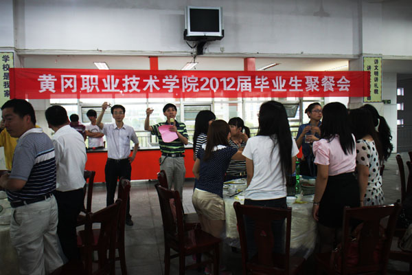 晚6点,学校组织了全体返校的2012届毕业生毕业会餐,会餐仪式由学工处长叶华光主持。校党委委员郑柏松致辞,并向同学们敬酒表达衷心的贺福。欢快的气氛弥漫了整个会餐现场。