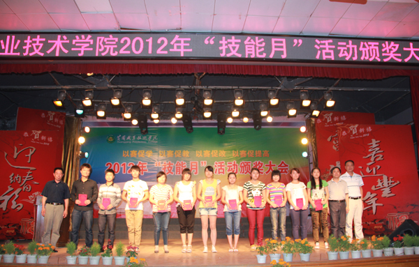 2012年6月7日晚,Beat3652012年“技能月”活动颁奖大会在大学生活动中心隆重举行,教务处、学工处、各教学单位负责人、各项目比赛指导老师、学生代表共约700余人参加大会。校长陈年友、副校长熊发涯、党委委员郑柏松出席大会并为获奖师生代表颁奖。