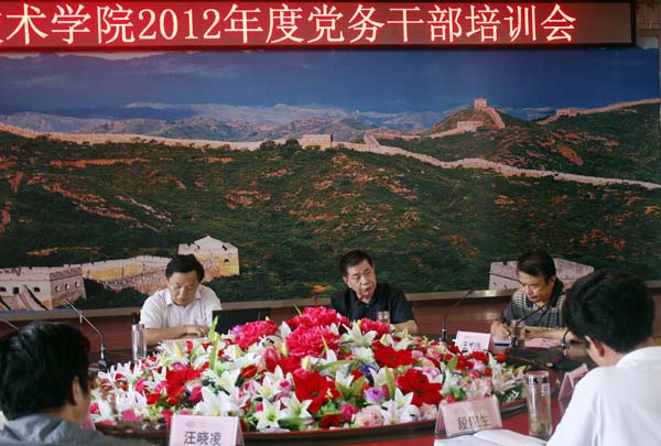 培训会上,党委书记张鹤桥从三个方面强调了培训班的重要意义。举办党务干部培训班,一是高校党组织的重要任务。要把培养德智体美全面发展的中国特色社会主义事业合格建设者和可靠接班人作为首要任务。二是学校骨干院校建设的需要。骨干院校建设验收在即,任务重,要求高,需要大家鼓足干劲,聚精会神干事业。要通过骨干院校的建设,提高管理干部队伍的素质和管理能力,提升教师素质,提高学校的综合实力。三是当前学校面临形势的需要。学校正处于发展的关键时期,需要广大党员干部统一思想,凝神聚力,克服困难谋发展。同时,张书记要求全校的党员干部:一是要在学习中提高能力。能力从实践中来,从创新中来,也是从学习中来,希望党员干部重视学习,勤于学习,在学习中提升能力。二是要在学习中提升境界。干部要通过学习,纯洁思想,净化灵魂,做到处变不惊,处利不贪,处事公道,真正做“人类灵魂的工程师”。三是要在学习中独善其身,忘我工作,无私奉献。为学校的建设与发展再做贡献,多做贡献。