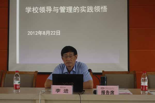 全国高职高专校长联席会议主席、上海师范大学原校长李进教授应邀为培训班做了题为《学校领导与管理的实践领悟》的专题讲座。李进教授站在国家教育战略和管理学的高度,从学校领导与管理的总体把握、协调运作和个性体现三个方面,对高校管理做了精辟的分析,对干部领导能力和素质提升提出了独到的见解,具有极强的现实指导意义。他精彩的报告赢得了与会人员的高度称赞。