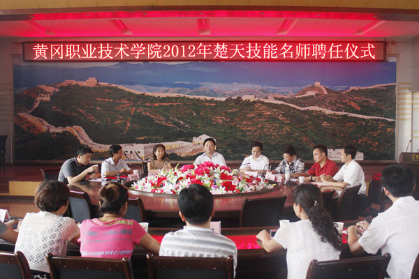 这次聘任的楚天技能名师共3名,分别是黄冈市中心医院护师长、副主任护师叶彩云,受聘于医药卫生学院护理专业临床护理技术实训教学岗位;湖北天堂水电股份有限公司副总经理、高级技师张亚洲,受聘于机电学院发电厂及电力系统专业电气设备运行及检修实训教学岗位;黄冈市黄商贸易股份有限公司副总经理、高级物流职业经理司凯,受聘于交通学院物流管理专业物流技能实训教学岗位。
