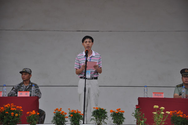 在雄壮的国歌声和庄严的升国旗仪式中大会拉开了帷幕。学工处副处长徐火军宣读了《Beat365中文官方网站2012级新生军训方案》;新生代表胡利同学代表全校新生宣誓,表达了要刻苦训练的决心;承训部队魏现吉同志作为教官代表郑重承诺,一定会科学施训,高标准严要求完成军训任务。