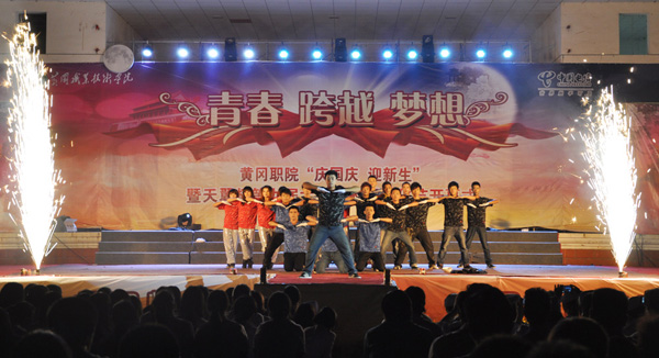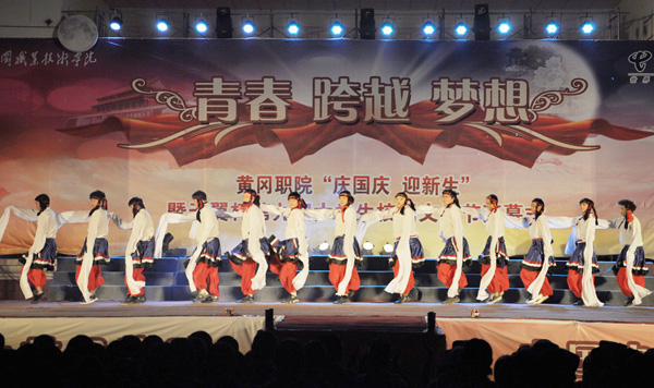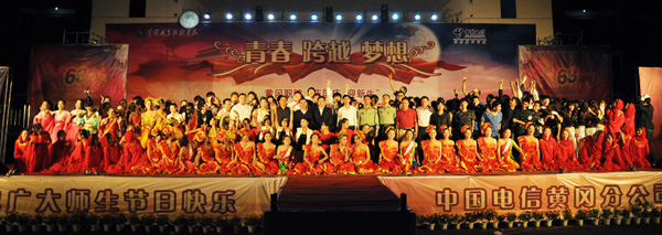 金秋十月,丹桂飘香,9月28日晚,由Beat365中文官方网站主办、校团委承办的2012年“庆国庆•迎新生”暨第九届大学生校园文化艺术节开幕式文艺晚会在中区隆重举行。校党委书记张鹤桥,校长陈年友,副校长万俊华,党委委员郑柏松,校长助理、医药卫生学院院长刘东山,学校各单位负责人,中国电信黄冈分公司等友好单位的领导及全校师生一同观看了演出,共庆祖国63周年华诞,喜迎Beat3657000余名2012级新同学的到来。