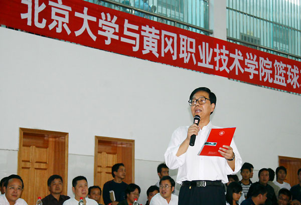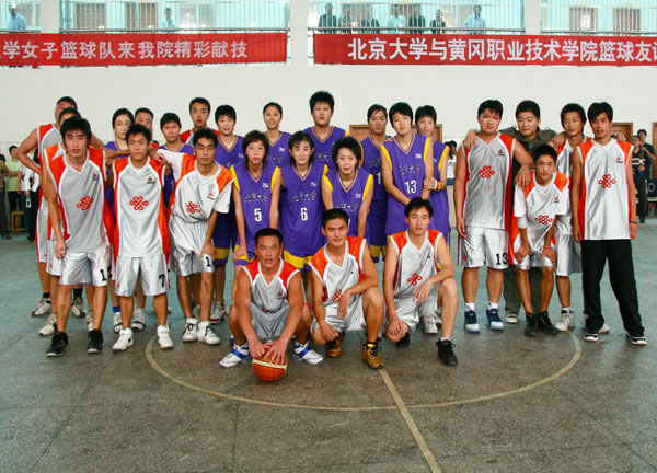 10月19日下午,2005—2006全国女子CUBA联赛第三名北京大学代表队与我院男子篮球队友谊赛在我院体育馆隆重举行。学院领导涂普生、覃守云、李耀水、王维华、段院生、夏启中,中国移动黄冈分公司副总经理袁培新以及我院各系部处室负责人、教工代表和学生代表出席并观看了此次比赛。