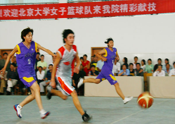比赛过程中,双方队员精神饱满,信心十足。北京大学代表队的队员们以她们精准的投篮和默契的团队配合将比赛推向一次又一次的高潮,赢得了场下观众阵着热烈的掌声。我院篮球队员面对强敌不畏困难、顽强拼搏,最后以39比34领先五分获胜,为学院赢得了荣誉,争得了光彩。
