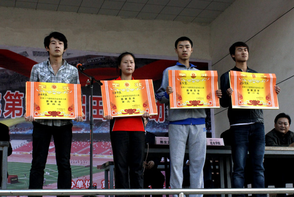 团体总分前四名单位的代表领奖