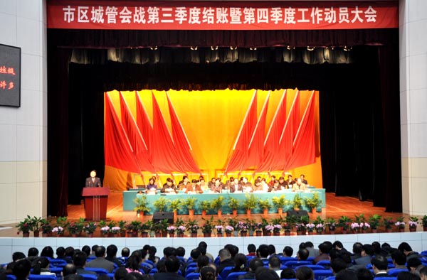 11月12日上午,学校保卫处处长邓国璋参加了在市职工活动中心举行的市区“城管会战”第三季度结账暨第四季度工作动员大会,并在会上作经验交流。市长刘雪荣出席会议并作重要讲话,市领导王静平、马萍、孙璜清、雷邦贵、崔永辉、黄祥国、石磊出席本次会议,市委常委、副市长黄祥国主持会议。