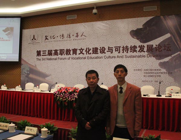 沐十八大春风,享文化之盛典。2012年11月12日-15日,全国第三届高职教育文化建设与可持续发展论坛在浙江杭州举行。校党委书记张鹤桥、党委委员郑柏松、宣传部部长白颢、学工处副处长徐火军等参加了论坛。