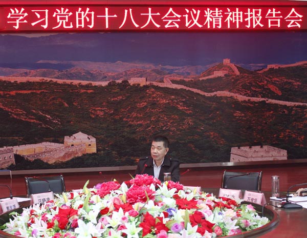 11月19日上午,学习党的十八大会议精神报告会在校中心会议室召开。党委书记张鹤桥主持了大会。思政课部副教授袁继道主讲。党委中心学习组全体成员参加了会议。