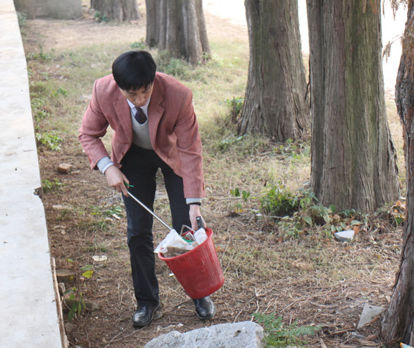 在郑委员的统一部署下,服务队分为两组,从南校门大堤处分别向桃园街和土司港两个方向进行全面清理。在清理过程中,各位领导深入一线和同学们一起劳动,充分发扬不怕累、不怕脏的精神,仔细清理大堤上各处卫生死角,最后将清理的垃圾分类并集中处理。本次清扫活动历时一个半小时,在全体领导老师和同学们的共同努力下,巴河大堤上的白色垃圾全部清除,面貌焕然一新,校园周边环境卫生得到了很好的改善。