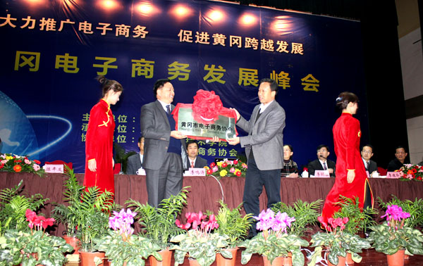 刘雪荣为黄冈市电子商务协会授牌,陈年友接受黄冈市电子商务协会会牌。刘市长在会上致辞。他指出,此次举办的电子商务发展峰会对于我市加快信息化进程具有里程碑的意义,将使黄冈站在一个更高的领域,站在比别人抢先一步的平台上,通过打造智慧黄冈,推动智慧政府、智慧产业、智慧民生的发展,实现黄冈赶超发展。