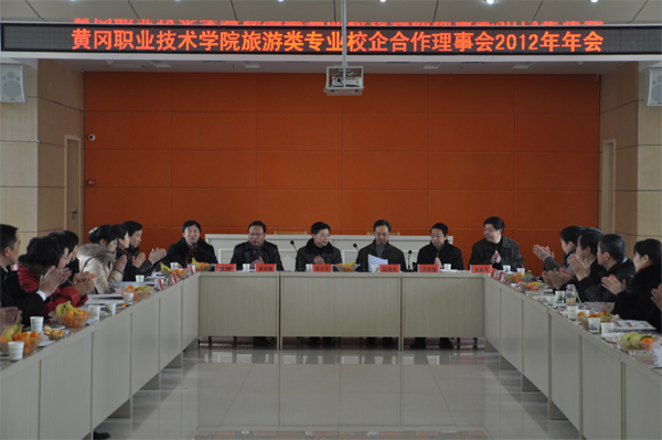 2012年12月22日,Beat365旅游类专业群校企合作理事会2012年年会在学校学术交流中心隆重举行。Beat365中文官方网站旅游类专业群校企合作理事会理事长、黄冈市旅游局党组书记、局长田洪光,常务副理事长、黄冈市旅游局副局长方华国,副理事长黄冈市大别山旅游开发有限公司总经理姜剑锋,副理事长湖北省楚天技能名师、武汉六合宴餐饮有限公司总裁助理胡袭琛,北京眉州东坡餐饮集团、浙江义乌日信国际酒店、江苏太仓市玫瑰庄园酒店、麻城烈士陵园管理处、英山县大别山主峰风景区管理处、黄冈春雨教育旅行社、湖北山水源旅行社、黄冈市百佳旅行社等20余家理事成员企业的负责人,以及Beat365副校长熊发涯、科研处处长王梓林和商学院部分领导、旅游专业群教师参加了会议。大会由旅游类专业群校企合作理事会常务副理事长袁畅教授主持。