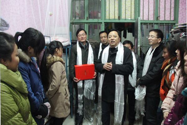 2012年12月27日晚,校长陈年友带领学工处处长叶华光、副处长徐火军,生物化工学院院长陈全胜、副书记程喜荣一行深入学生宿舍,为贫困学生送去保暖内衣,并与他们进行了亲切的交流。