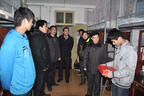 熊发涯一行首先到21栋214寝室看望来自海南偏远山村的学生软件201102班的邱育武。熊发涯鼓励他一定要学好专业知识,要善于总结学习方法,不断提高学习效率,为就业发展打下坚实的基础,家庭经济困难只是暂时的,要有信心和决心去创造和改变,在逆境中求学,意志更要坚定不移,才能达到自己的人生目标。邱育武很受鼓舞,向在场的领导老师汇报了自己的学习工作情况,很感谢黄冈职院领导老师的培养和帮助,他一定会继续努力提高自己的专业水平,积极去帮助和服务集体与他人,他经常阅读并使用副校长熊发涯的专业书籍,很受启发。他还说,在黄职大爱精神的感染下,他一定会终身铭记,等自己有条件了,也会去帮助更多的人。随后,熊发涯一行到南四舍609寝室看望了来自甘肃偏远贫困乡村医管201201班的杨吉萍,熊发涯认真了解了她的家庭情况和学习生活状态,尤其是对专业的认知水平,现在是读大一,最好是要摸索出一套科学有效的学习方法,再去拓展和提高,熊发涯还将自己对专业的理解和学习方法与杨吉萍交流,并告诉她专业领域的发展空间,杨吉萍和寝室同学受益匪浅。杨吉萍说,她当初填报黄冈职院时,家人不放心,自从来学校后,感觉黄冈职院就像一个温暖的大家庭,师生间和谐快乐,尤其是爱心资助更是温暖人心,每次给家人打电话,家人都说自己长大了,懂事了,这次校领导送棉衣,家人知道后,一定会特别高兴,而且还会与身边的人分享。在交流过程中,欢声笑语间左右隔壁寝室的同学都过来感受领导的关怀,聆听朴实的话语,享受家的温馨。